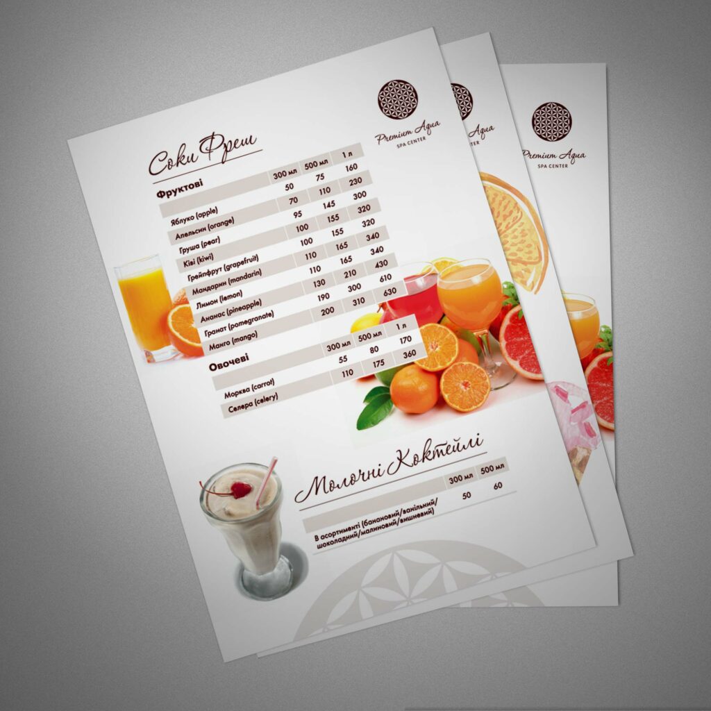 Коктейльное меню для Premium Aqua Spa
